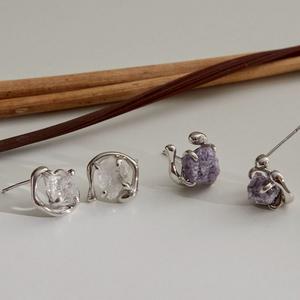 【BONNY&READ飾品】[天然礦石] [B&R設計款/銀針/鍍白金] 心靈饗宴耳環 / 2色 白水晶 紫雲母 耳環