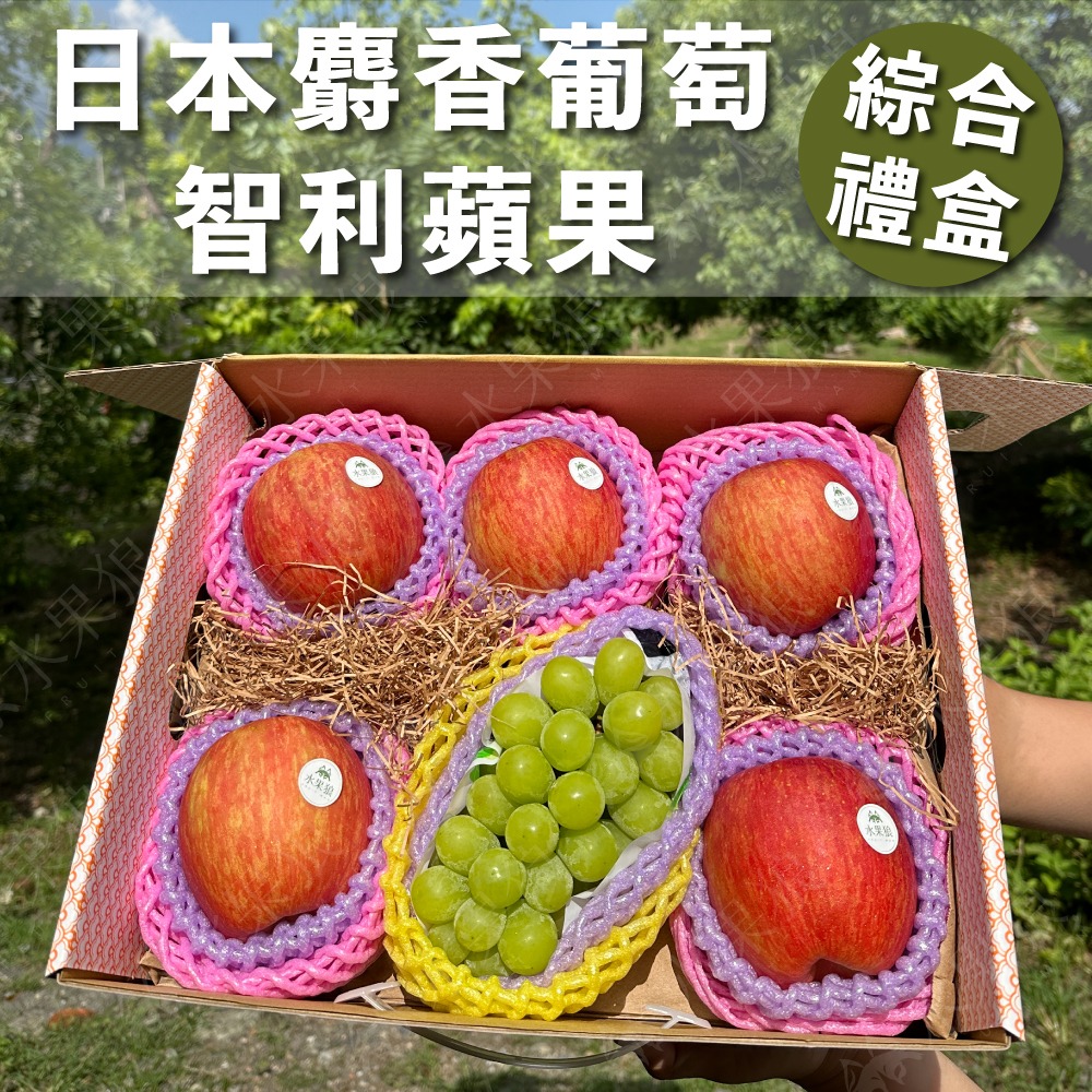 【水果狼】 日本麝香葡萄+富士蘋果6顆+日本蜜柑PE 綜合水果禮盒 新年禮盒 免運