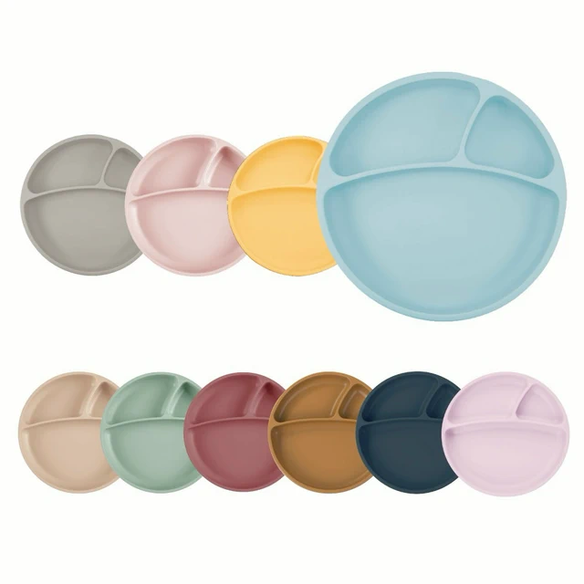 【預購】寶寶餐具組【寶寶市集】寶寶市集 超強吸盤兒童矽膠餐盤/白金矽膠餐盤 寶寶餐具套組9件組 - 米色