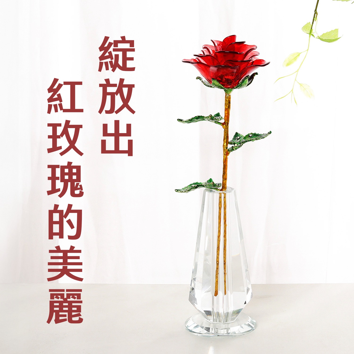 【吉利水晶】經典告白紅色玫瑰花水晶 空間裝飾擺飾 水晶擺飾 生日禮物 情人節禮物