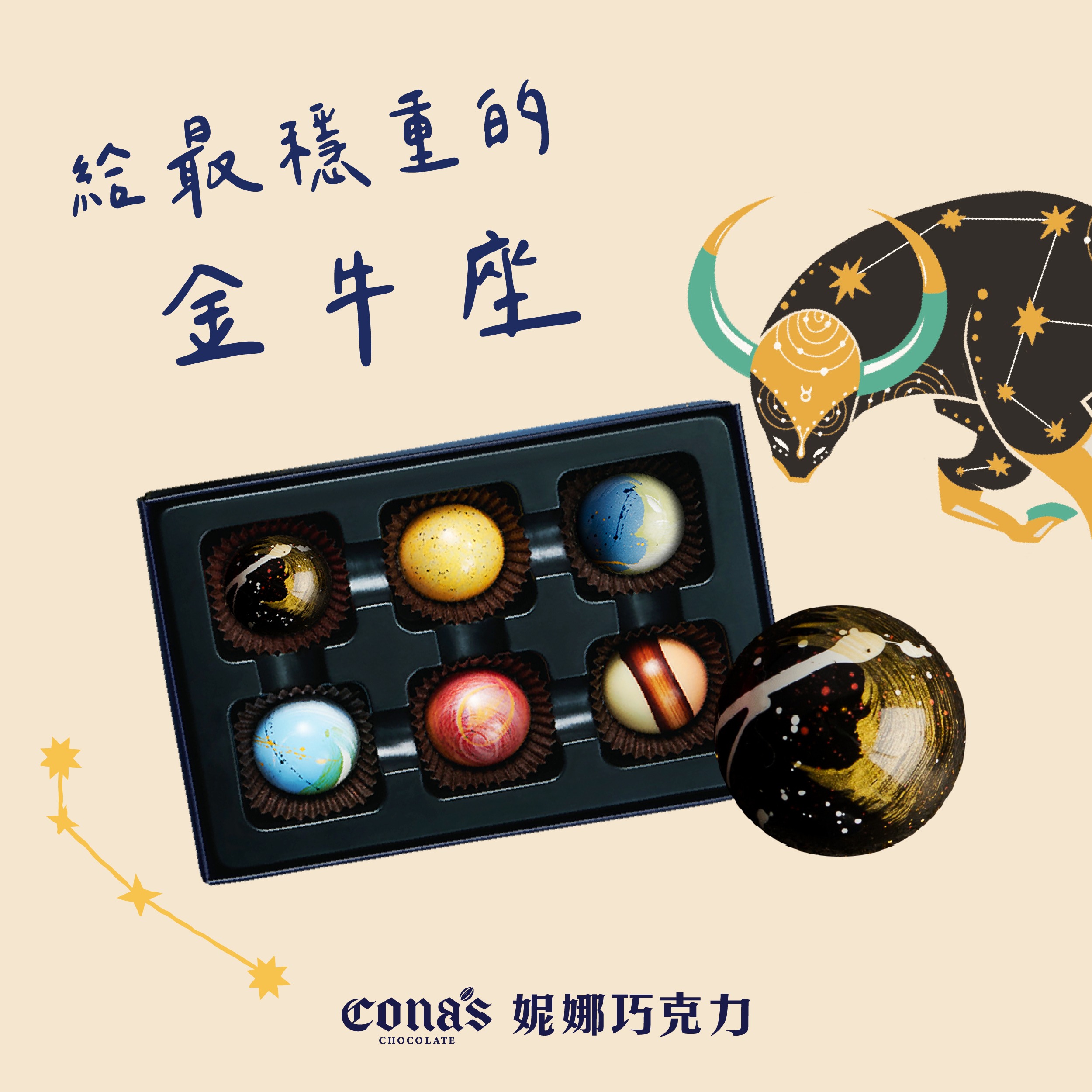 雙子座生日快樂🎂【Cona's妮娜巧克力】星座巧克力 (6入隨機/盒)