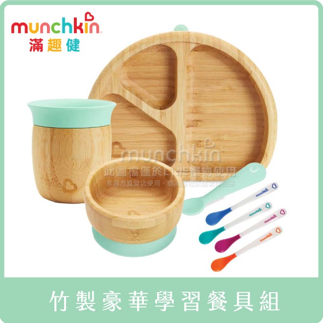 【sunup baby】Munchkin滿趣健 竹製可拆吸盤碗 + 矽膠湯匙組