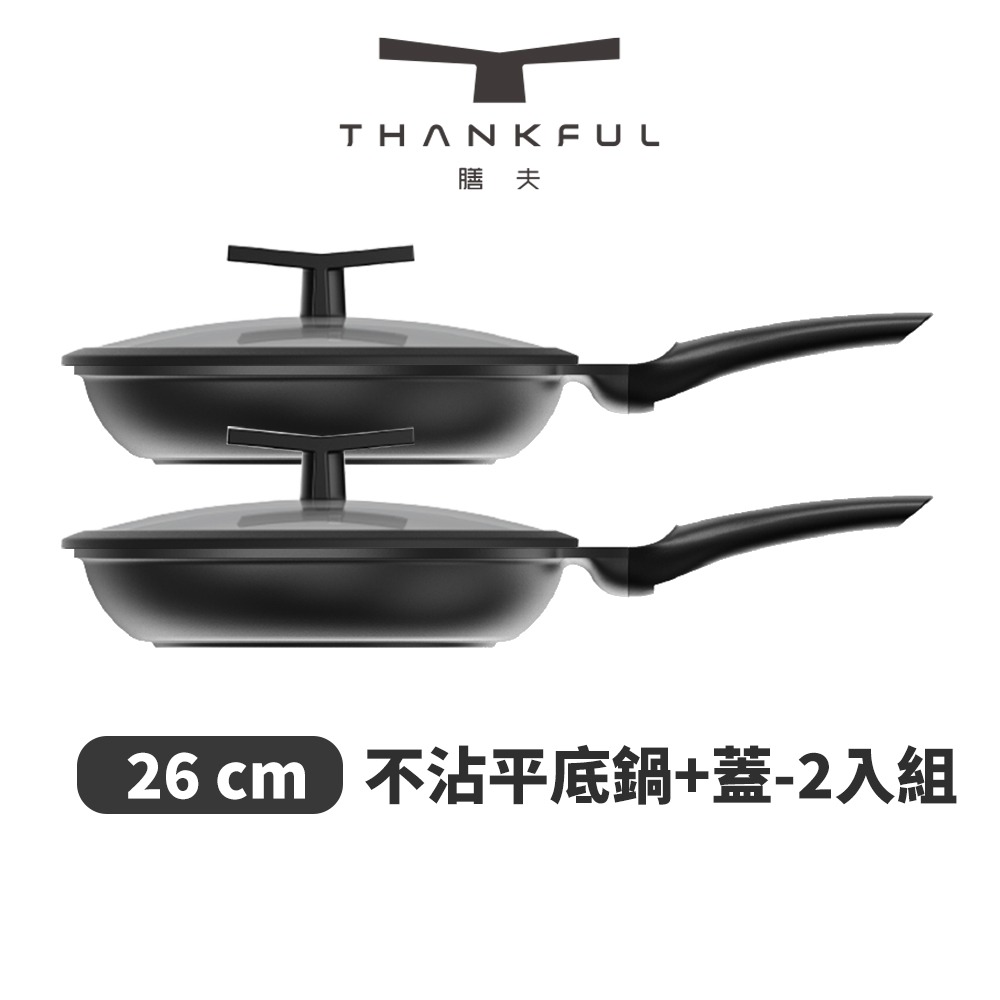 【THANKFUL 膳夫】鈦離子不沾小奶鍋(18cm)(含蓋)+ 不沾平底鍋(26cm)(含蓋)(台灣總代貨源)/不沾鍋/平底鍋/IH爐/電磁爐/深炒鍋/湯鍋/SGS認證/冷鍋不沾