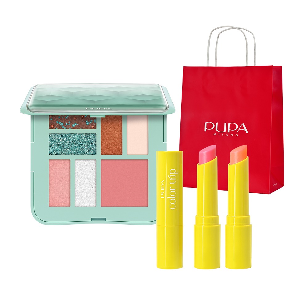 【PUPA】時尚調色全彩盤8g+繽紛冒險亮麗潤唇膏2.7ml - 多色任選.附提袋