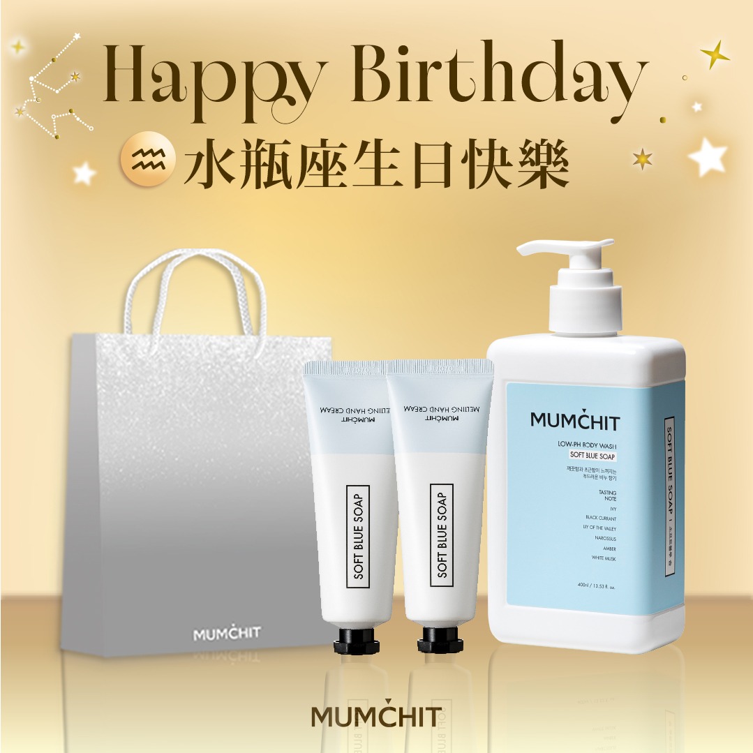 快速出貨【MUMĆHIT】水瓶座生日快樂!香氛身體乳液+香氛護手霜2入+霧銀禮袋(生日禮物)(水瓶座禮物)
