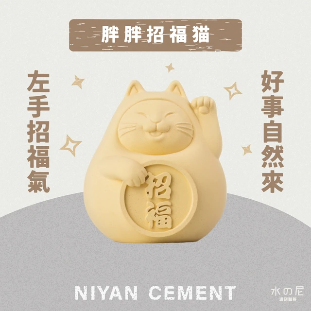 【 送禮首選】胖胖招財招福貓一對 (中)精油組