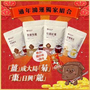 [過年鴻運獨家組合-3]【糖鼎黑糖】『LINE 禮物獨家』(黑糖烏龍3入/390g/包、桂圓紅棗13入/390g/包、冰糖菊花7入/210g/包、四合一薑母7入/210g/包、攪拌棒、錢母快速出貨