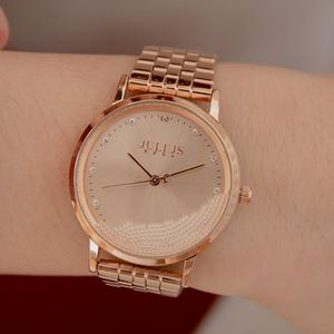 正韓JULIUS雪季戀歌點鑽刻度滾動雪花金屬鍊帶手錶-膚面玫金帶/酒紅面玫金帶