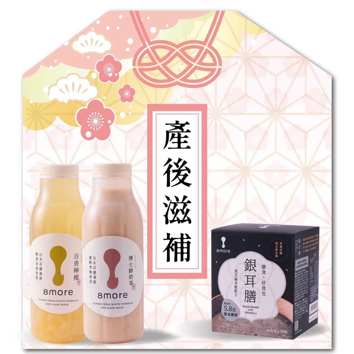 [收禮者自選口味]【8more】幸福三入組(花果系白木耳飲2瓶+銀耳優格飲1瓶+保冷袋(白))| 生日快樂 質感禮物 輕奢禮物 養生禮物 白木耳飲 優格 漸層 白木耳健康飲 銀耳飲 雪耳飲
