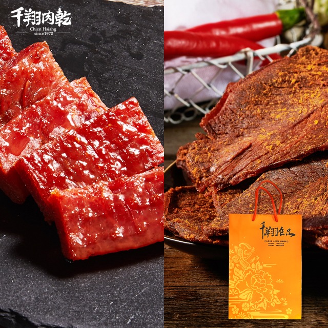 【千翔肉乾】 特厚蜜汁豬肉乾190g+五香牛肉乾130g/附精美提袋組