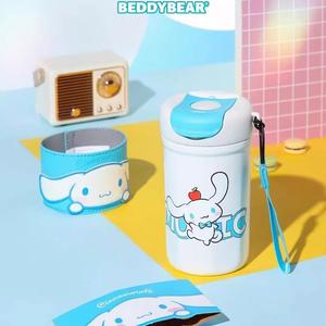 與你行飲相隨【BEDDY BEAR 杯具熊】卡通聯名炮彈保溫壺 - 650ml (共2款可選) 酷洛米 凱蒂貓 兒童水壺 寶寶水壺 吸管水壺 保溫杯 316不鏽鋼 一蓋多飲 大容量 上學 出遊 附背帶