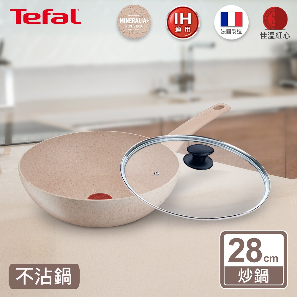 【Tefal法國特福】精靈複合不鏽鋼系列28CM不沾炒鍋(電磁爐適用)+玻璃蓋