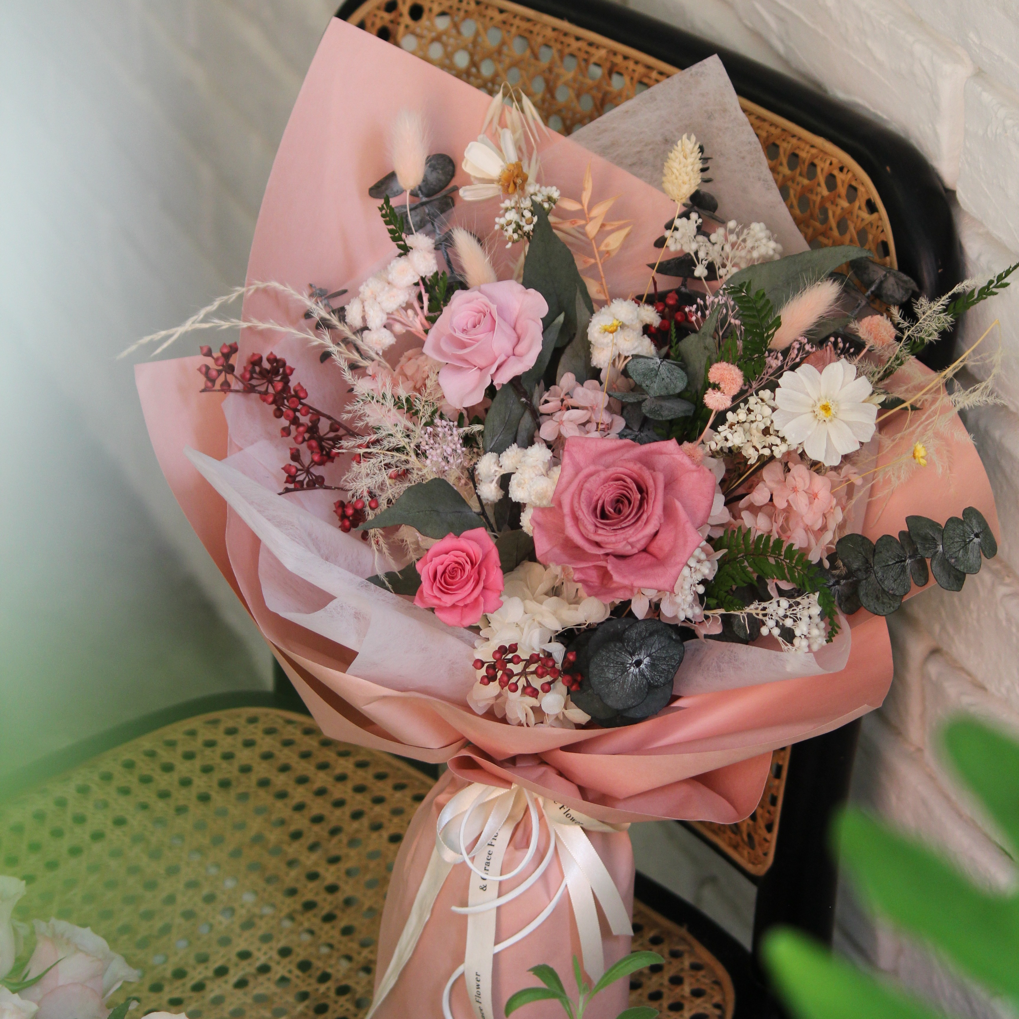 【& Grace Flower永生花禮花藝店】藕粉色永生花束 玫瑰 永生花 送禮花束 節日送禮 禮物