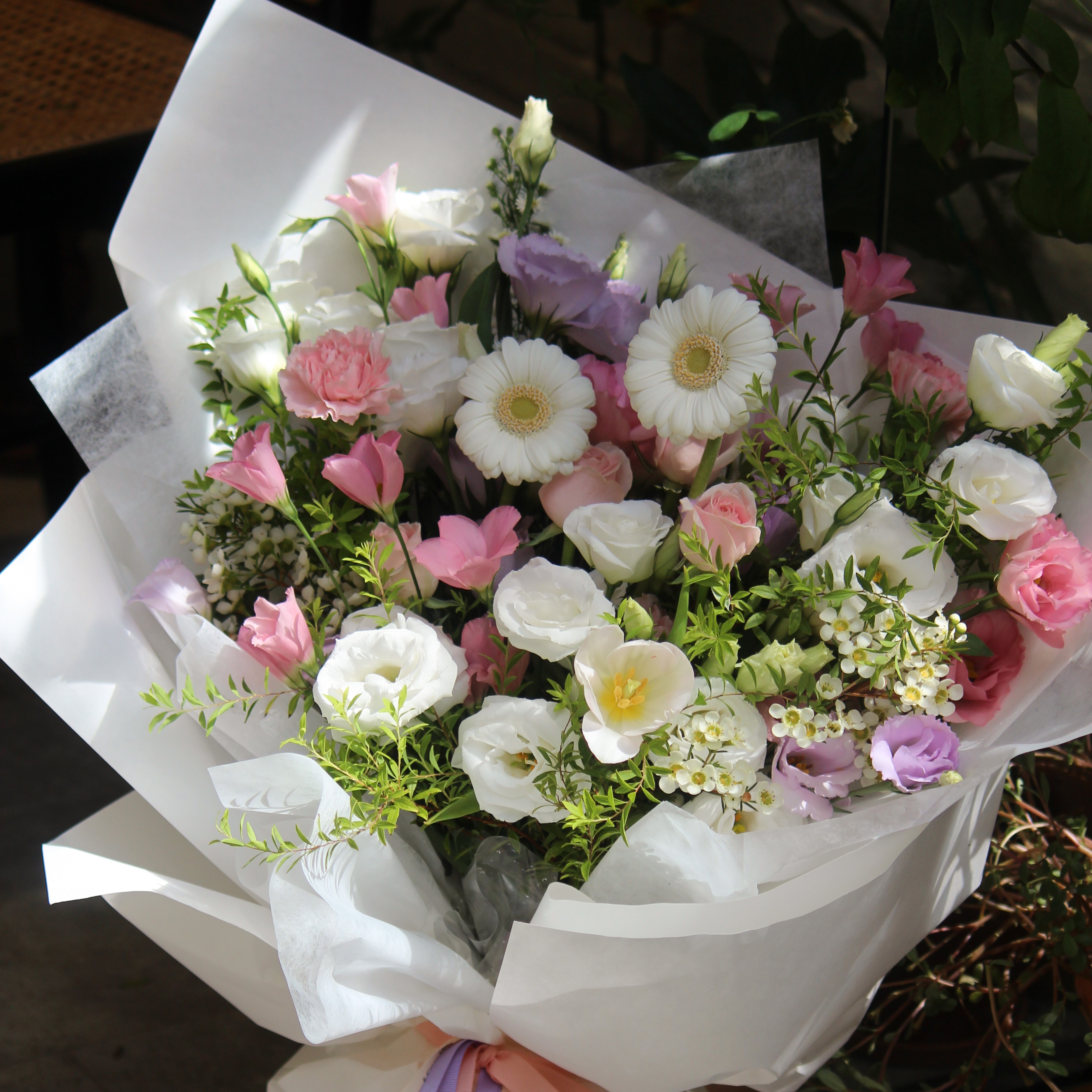 -限台中配送-【Blooming.sein 林粼花藝設計】情人節快樂💕 鮮花花束 粉白花束 情人節 生日 告白 求婚 節日禮物