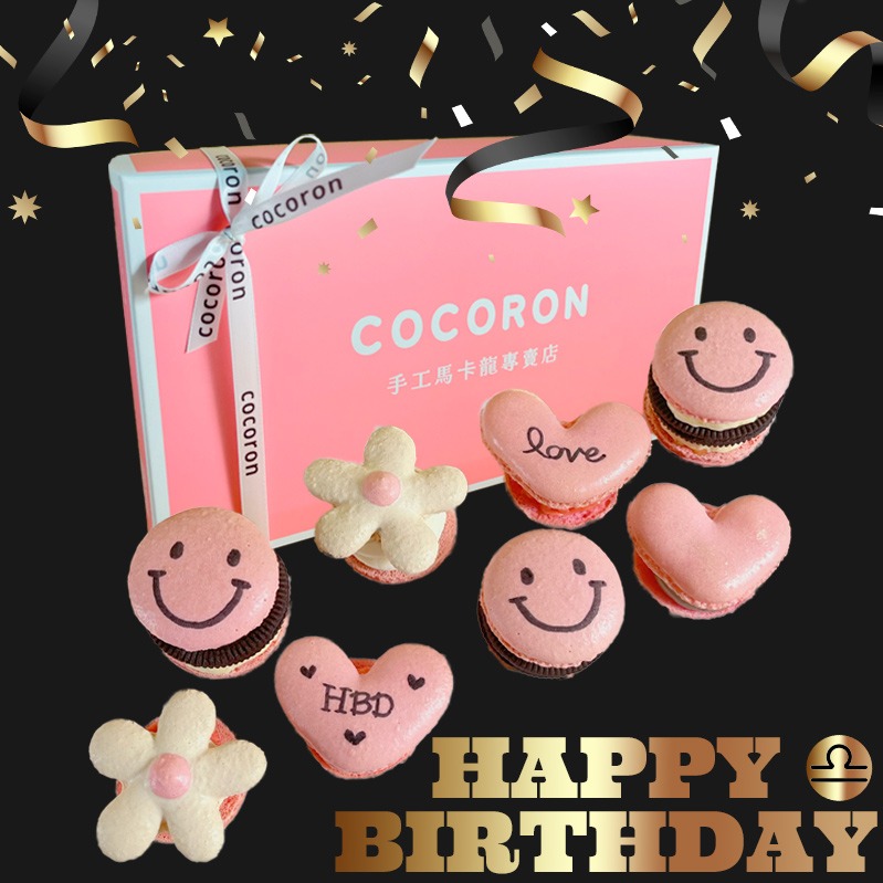 [COCORON 馬卡龍 마카롱 전문점] 生日快樂 十二星座 粉系 8入韓國胖卡龍禮盒 - 療癒造型馬卡龍禮盒