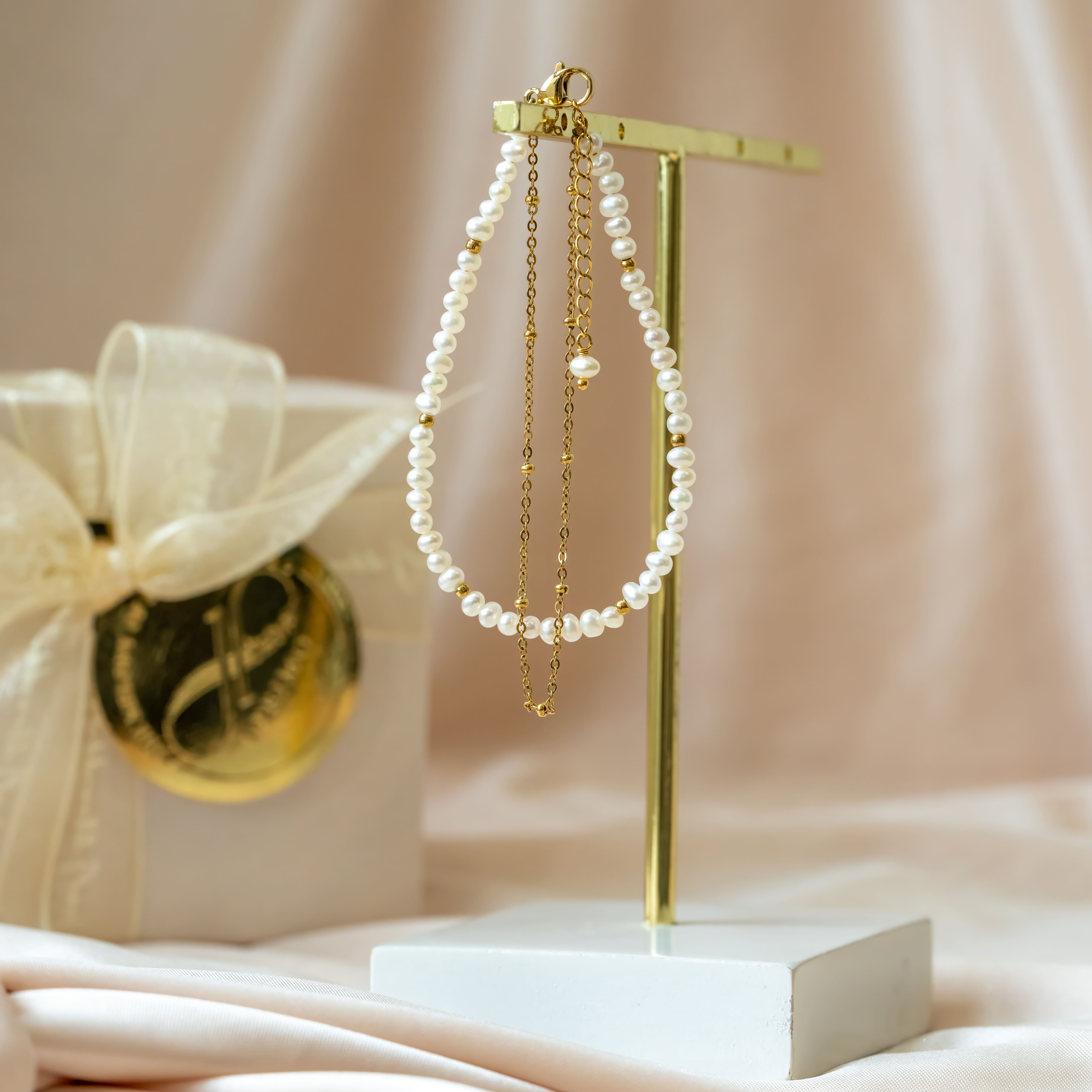【ZUZU JEWELRY】光澤弧面珍珠項鍊|鎖骨鍊|醫療鋼抗過敏項鍊。生日禮物