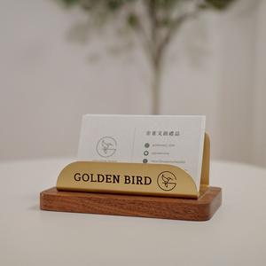 【金雀文創】金屬名片架實木底座|雷射雕刻|質感高級黃銅|名片 小卡 DM展示|業務 辦公用品 櫃檯用品|開業 禮品