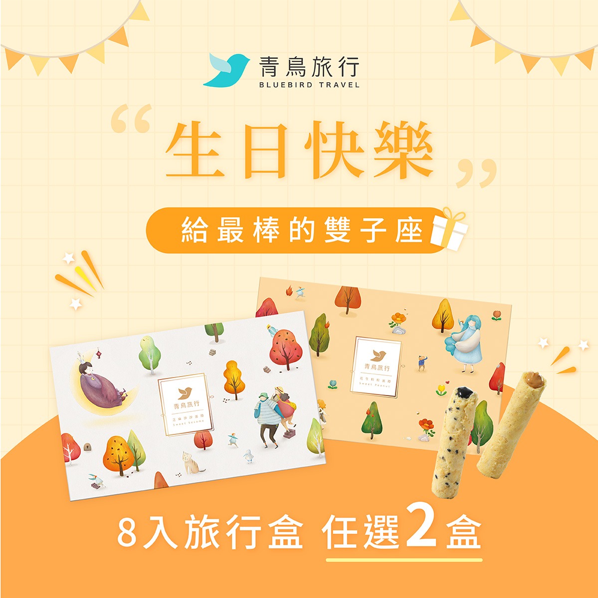 3日內出貨🚚【青鳥旅行】人氣經典口味2盒組(8入灌餡蛋捲禮盒2盒)金牛座專屬生日禮物 生日送禮 生日快樂 禮盒 閨蜜午茶 午茶禮盒-「收禮者可自選口味」