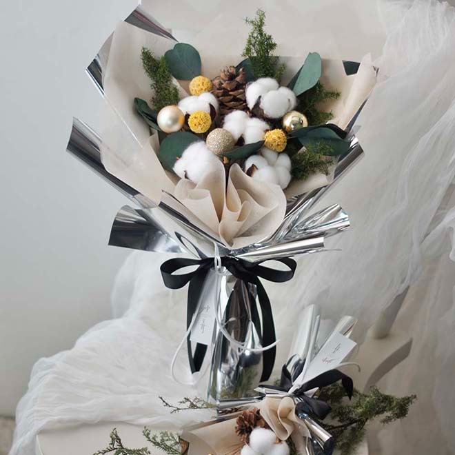 聖誕禮物首選【Flora Flower】聖誕節松果冰淇淋花束 聖誕節 情人節 永生花 開幕 生日 禮物