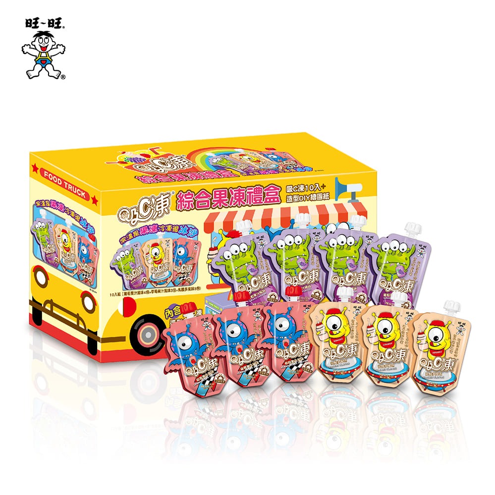 【旺旺】吸C凍綜合果凍禮盒 (草莓/葡萄/乳酸多) 900g (2025 年年節 ) 內附DIY吸C凍繪圖紙可摺成立體小車。