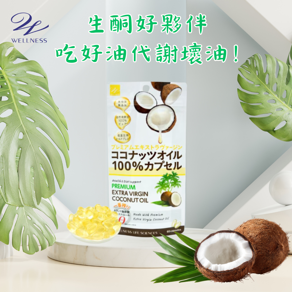 雙11下殺69折【Wellness】100%椰子油膠囊 60粒/包(2入組)(🎁加贈美姬光4包)