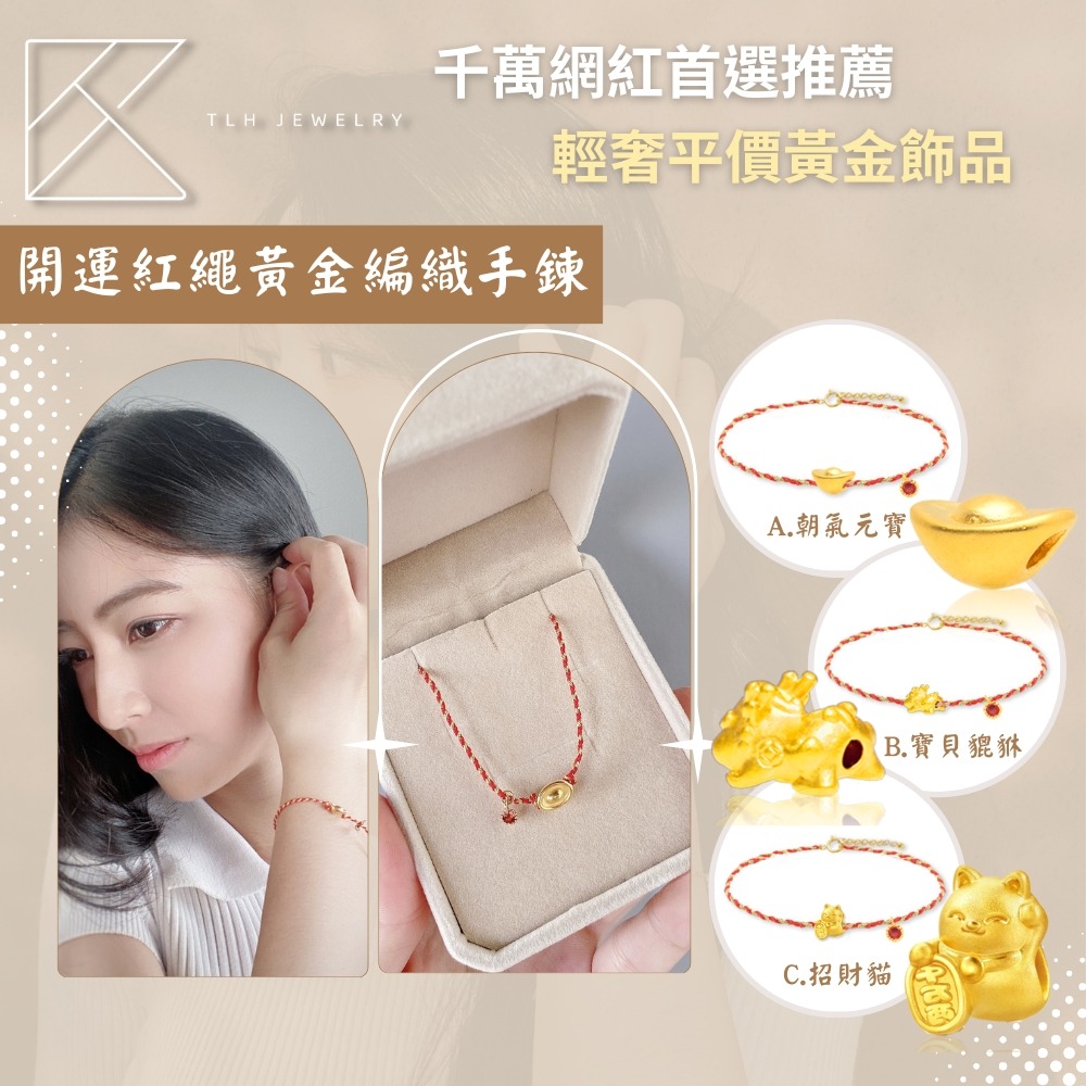 【快速出貨】【TLH】編織手鍊黃金墜 純金999 多選 開運紅繩 約重0.03錢±0.01(生日禮 情人節)