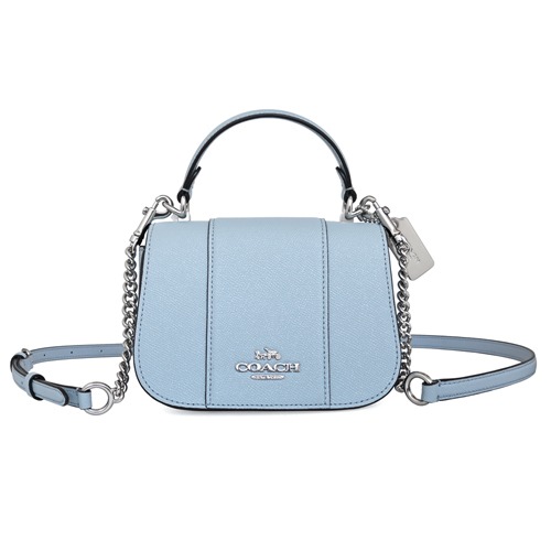 [平輸版] 【COACH】午夜藍C LOGO 拼接荔枝紋皮革帆布織帶手提/斜背小款立體方包 真品平輸