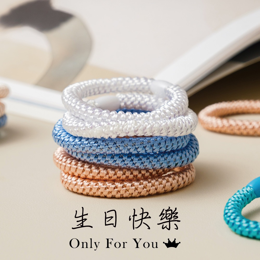 驚喜送好禮【R.England 皇家髮圈】水瓶座 生日快樂 粗版 彈力髮圈髮束15入 (沁藍海洋) - 不易鬆 不咬髮 彈性強