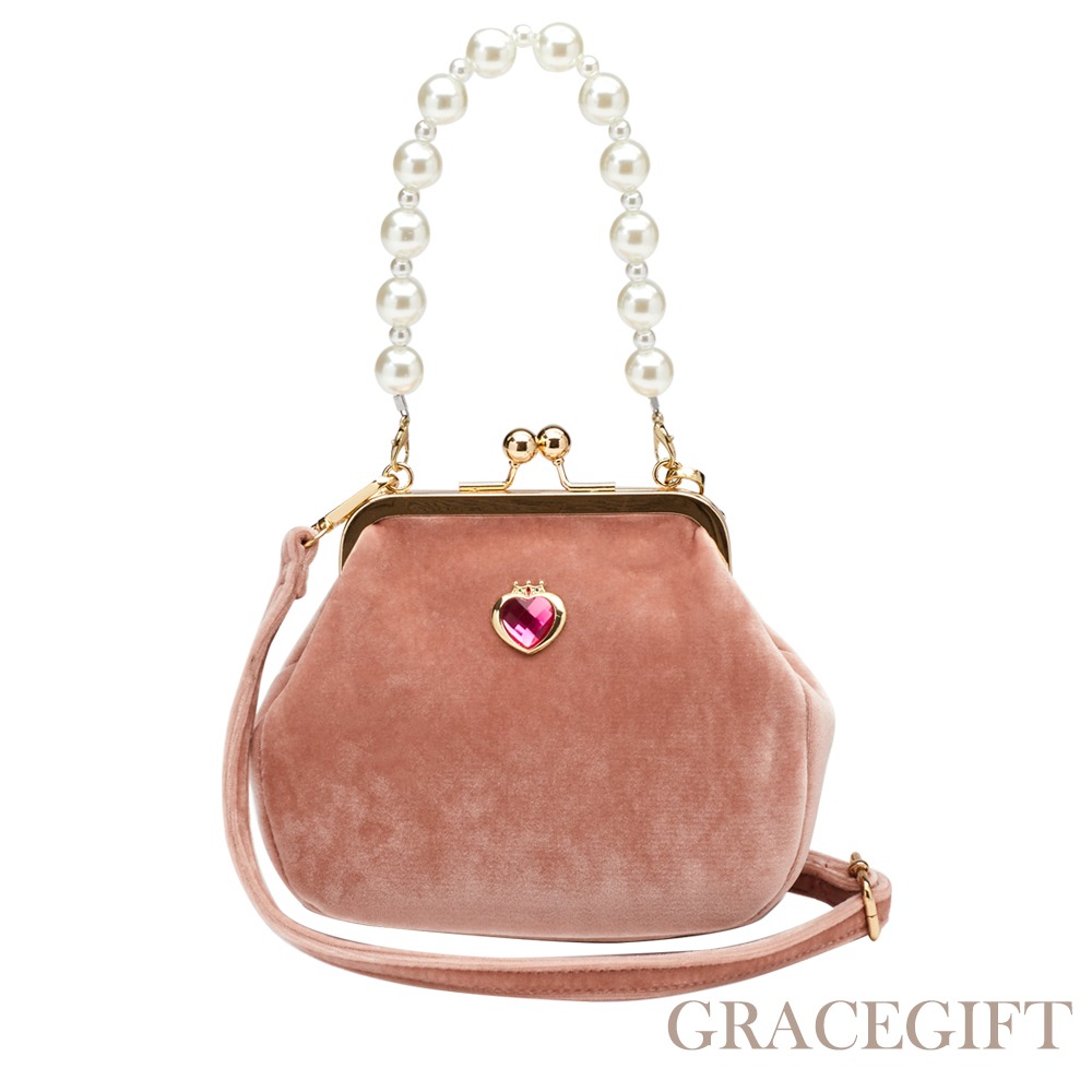 【Grace Gift】CareBears-珠光愛心波紋電腦包|任選米白、粉紅、銀、淺紫|禮物推薦