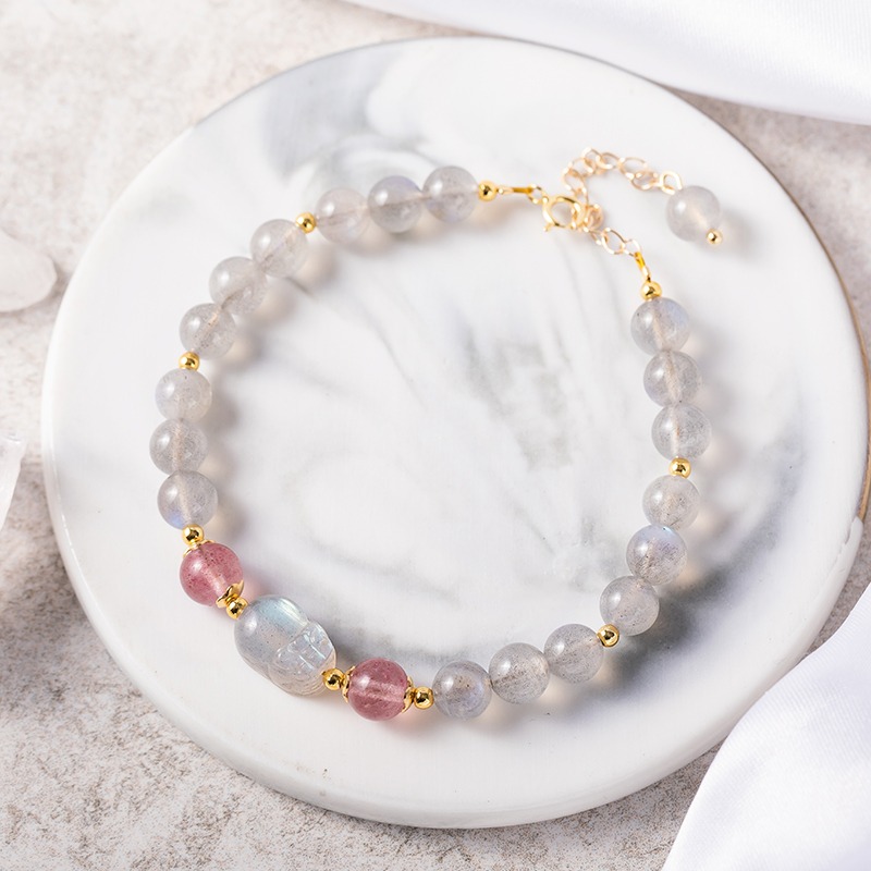[水晶]MARIGOLD莓好時光草莓晶/爆花白水晶天然石串珠手鍊-草莓晶+白水晶(收禮者自選尺寸)|好人緣 情緒平和 生日禮物 送女友