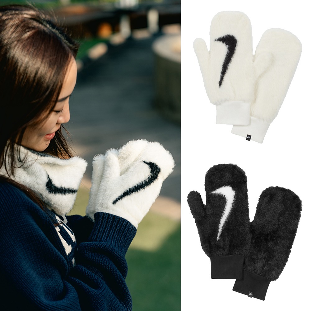 【NIKE耐吉】PLUSH KNIT白色女用絨毛連指手套(N1008868110ML/FV6099110)禦寒升溫寒流必備時尚速乾透氣導電保暖單車騎車冬天運動 天蠍座生日禮物 情人節禮物 上班族禮物