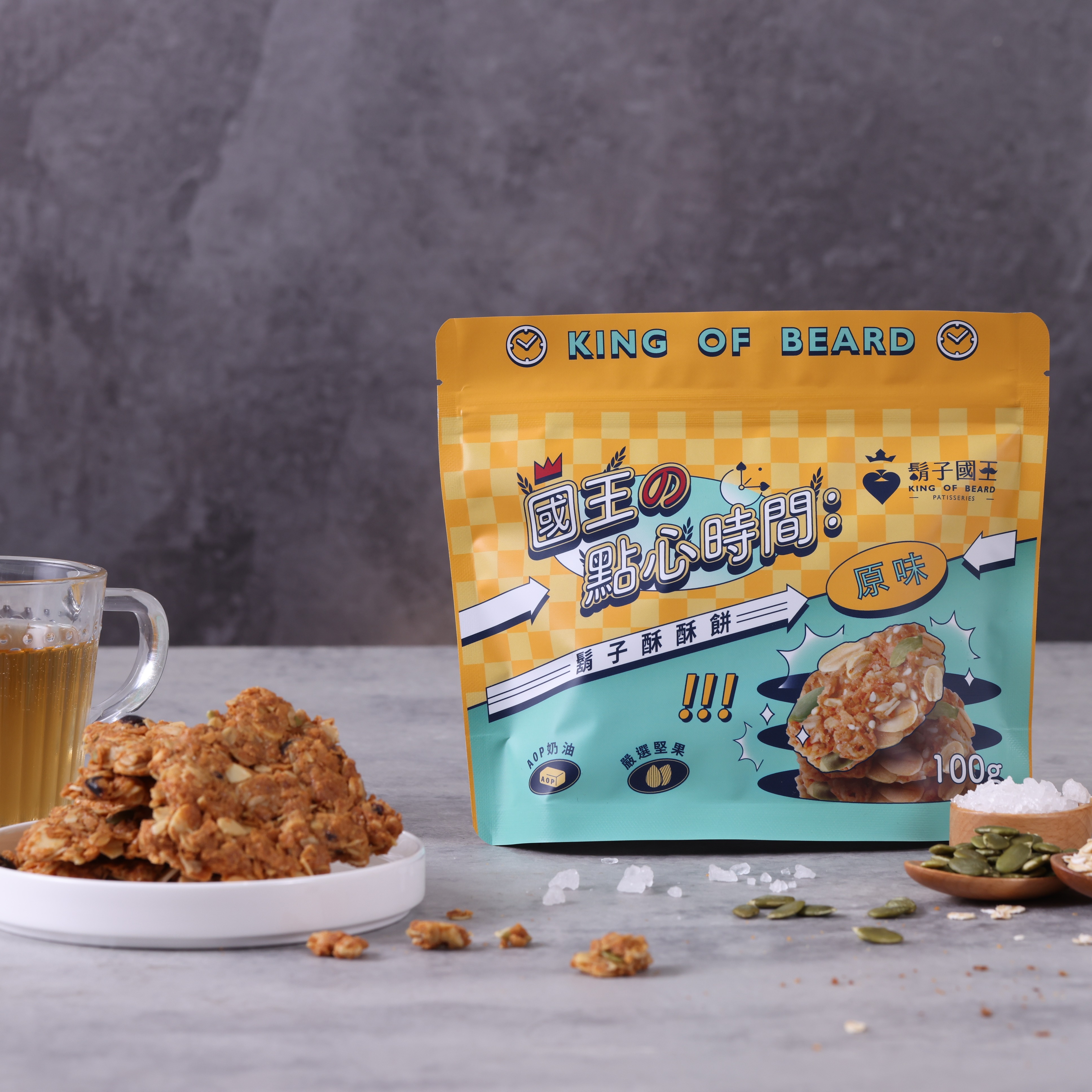 大嗑不罪惡【鬍子國王】酥酥餅4口味各1 (原味+可可+蒜香+草莓) 400g 下午茶 點心 營養 高纖燕麥 美味好吃 辦公室團購 分享 熱銷 伴手禮 禮品推薦