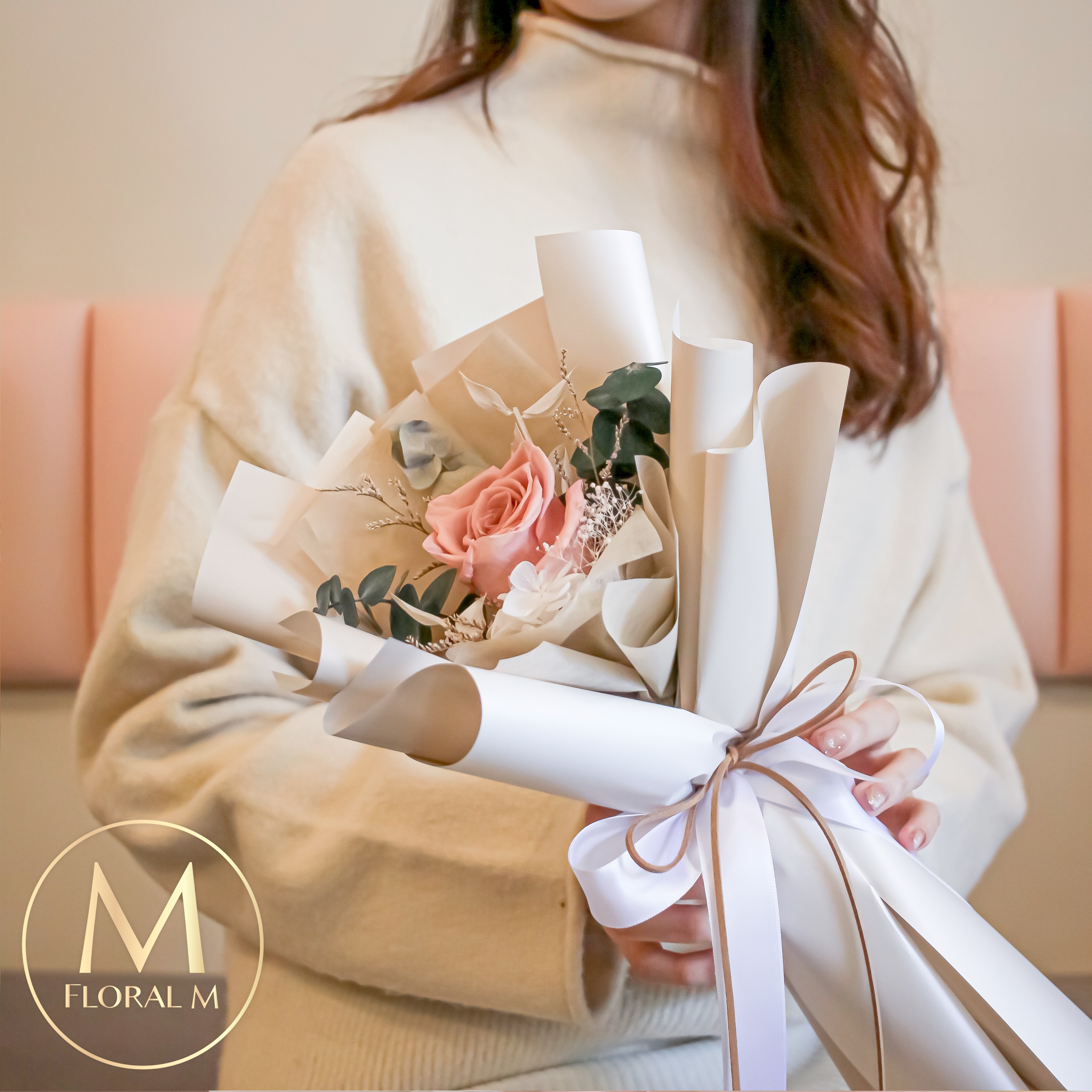 心動 No.1❤️浪漫日常【Floral M】La Rose高級法式白永生玫瑰花束 水瓶座生日禮物 情人節花束
