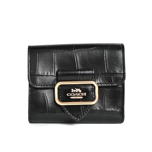[平輸版] 【COACH】黑色荔枝紋皮革C字拉鍊袋釦式雙摺短夾 真品平輸