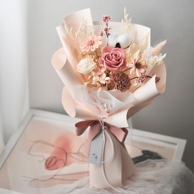 【艸弄Floral Design】小太陽迷你花束-迷霧藍/蜜桃粉|畢業花束 永生花 乾燥花 花束