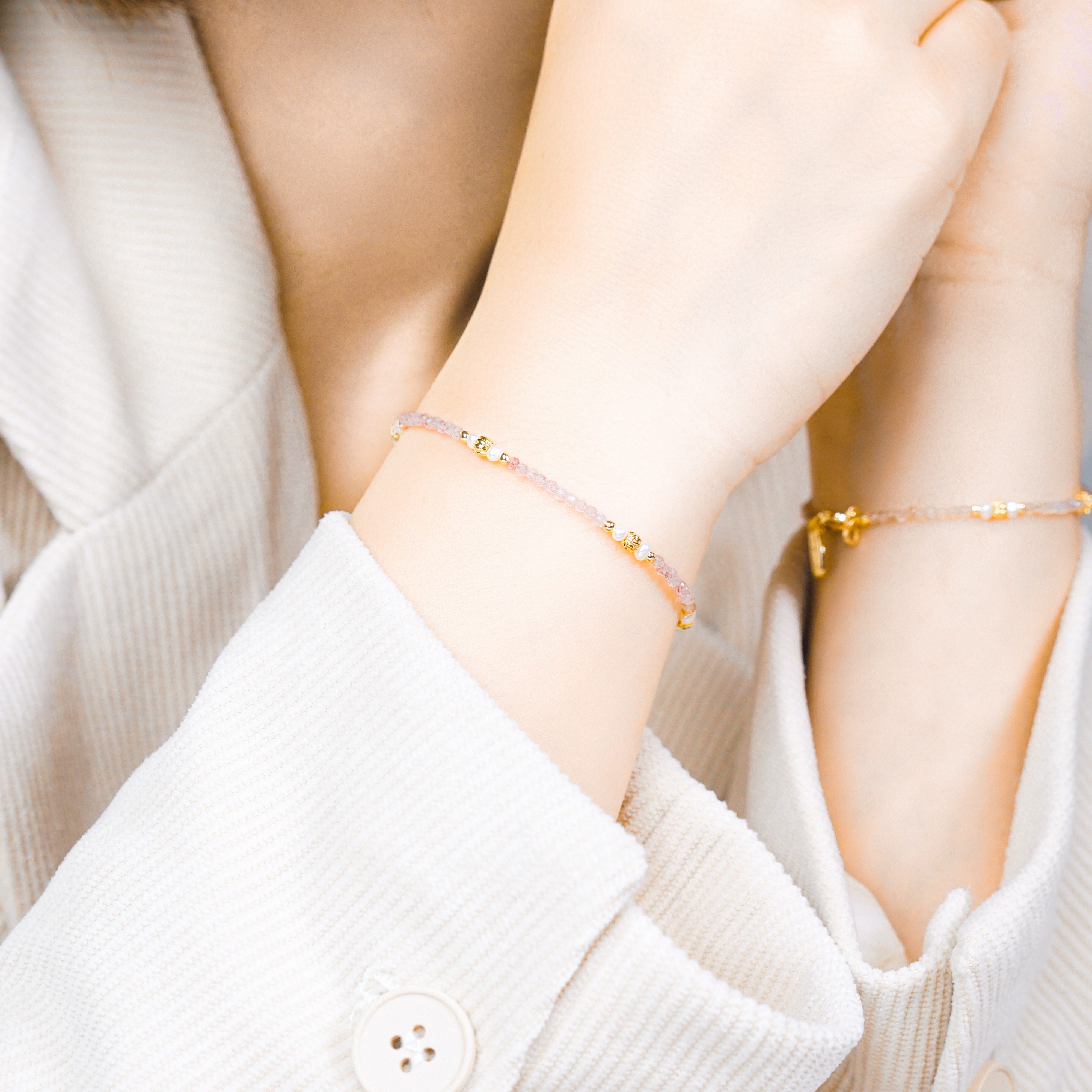 【Ficelle輕珠寶】世界盡頭的戀人| 紅瑪瑙 珍珠 太陽石 橙石榴石 月光石 草莓晶 白水晶 黃銅鍍18K金 雙層手鍊