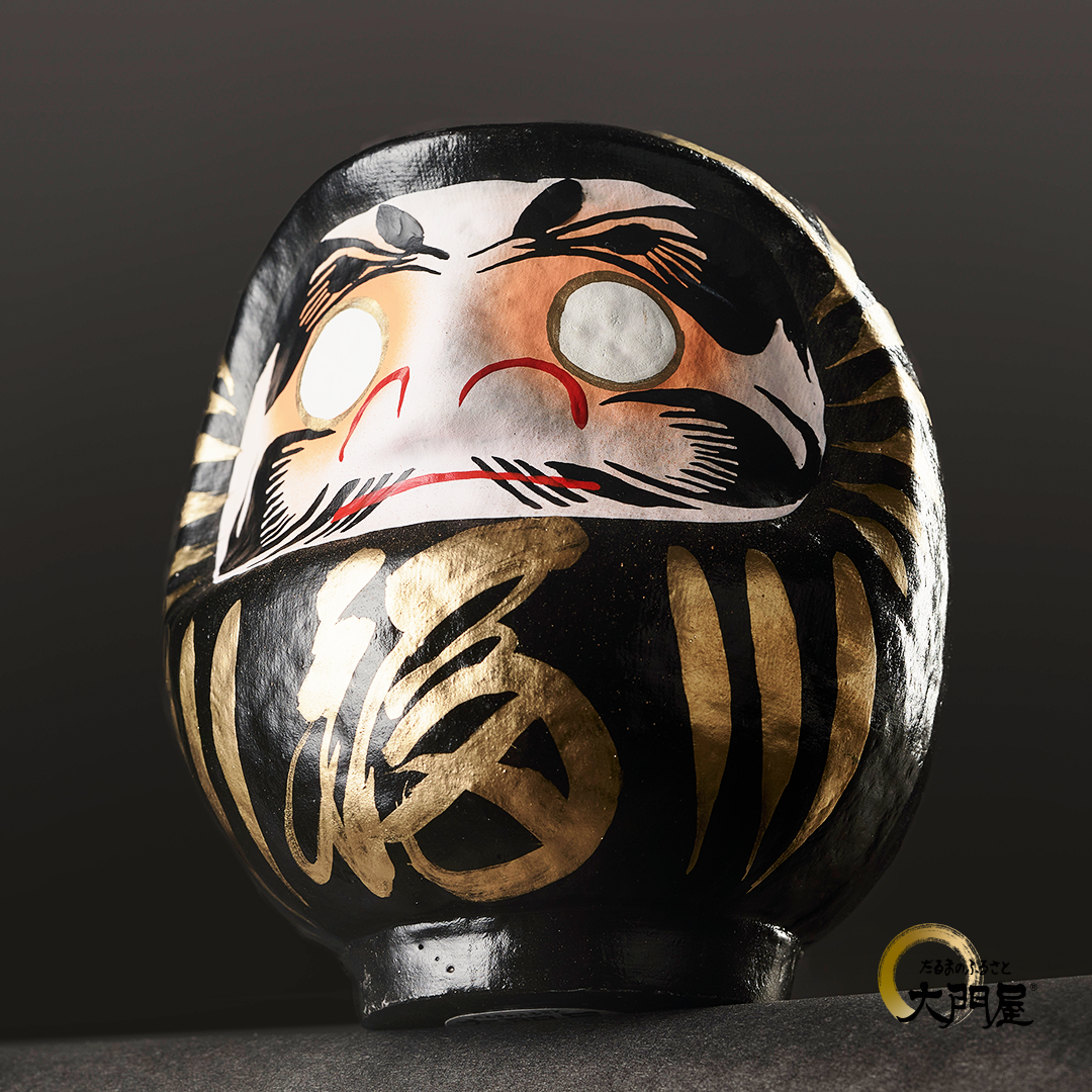 【日本大門屋】開運祈福 許願達摩 17公分 | 金黑『招財納福』