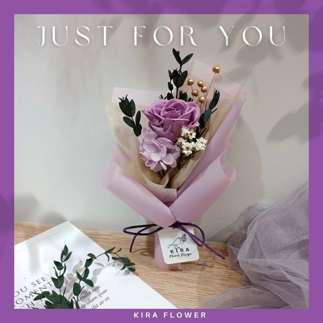【KIRA與花花藝】母親節限定/ love story永生花康乃馨花束禮盒-優雅紫/母親節花束/禮物/母親節/永生花花束