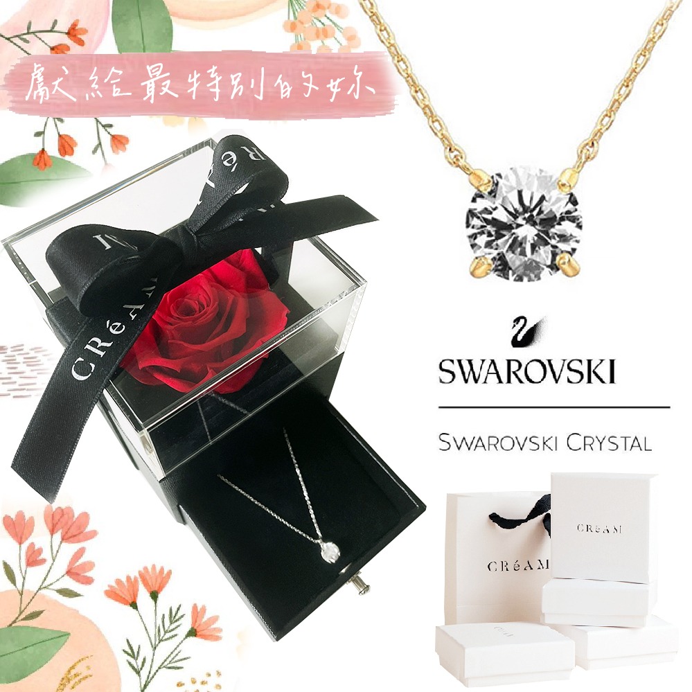 『快速出貨9折』情人獻禮❤️【CReAM 】Letitia施華洛世奇鑽飾項鍊+小香風香頌永生花禮盒組 #禮盒 #浪漫送禮 #生日禮盒 #情人禮物 #生日禮物
