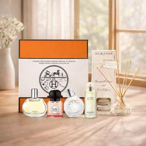 【HERMES 愛馬仕】小香禮盒四入組[絲巾+尼羅河花園+橘彩星光+巴赫尼](7.5mlX4)-國際航空版+品牌擴香組(100ml)x1-限定年終回饋組