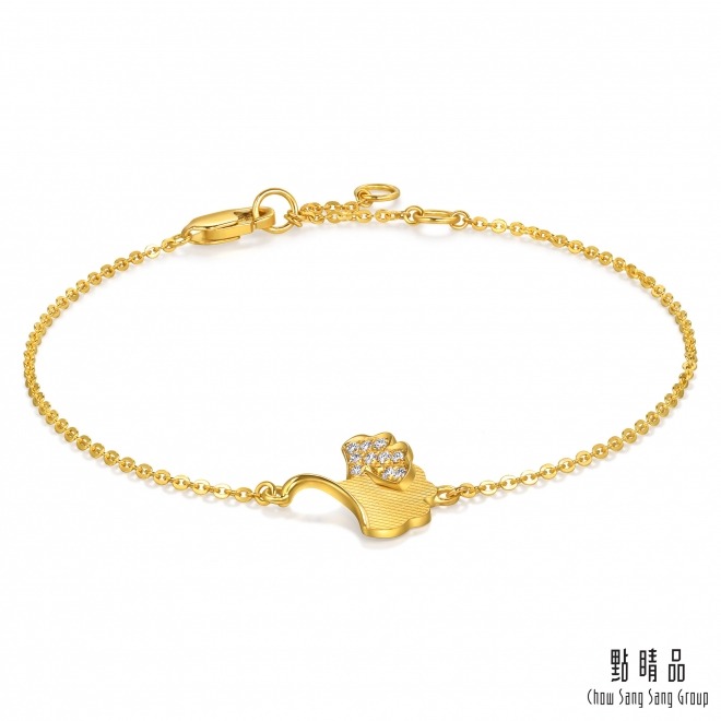 【TLH】黃金墜手鍊 純金999 多選 山茶花雙鑽 約重0.03錢±0.01(生日禮 情人節 )
