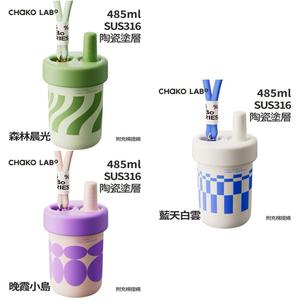 【CHAKO LAB】不鏽鋼陶瓷保溫啵啵杯 485ml 保溫杯 隨行杯 吸管 防滑降噪 提繩