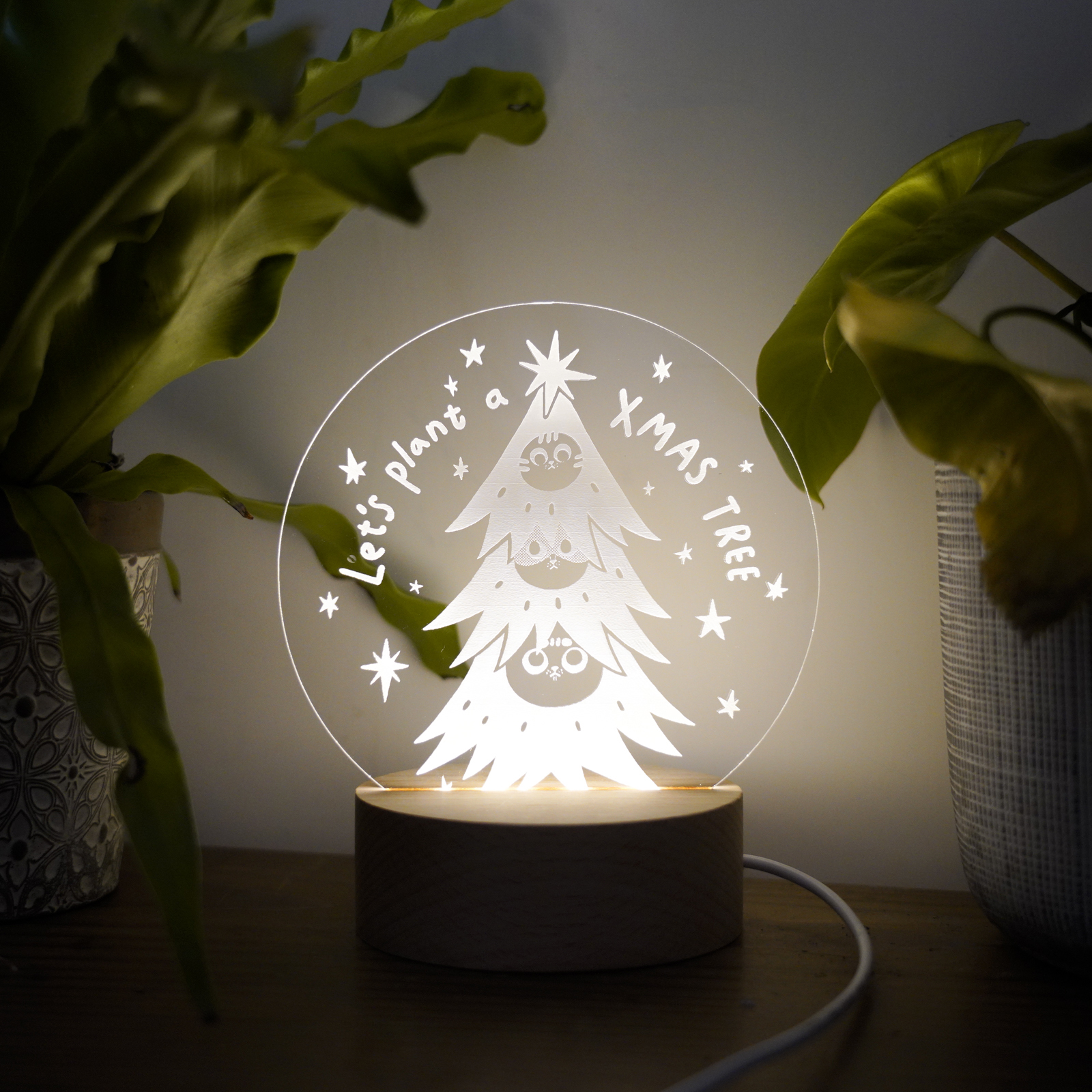 【LIGHTO】 街角遇到貓-插畫實木燈箱 | 白貓。摸我