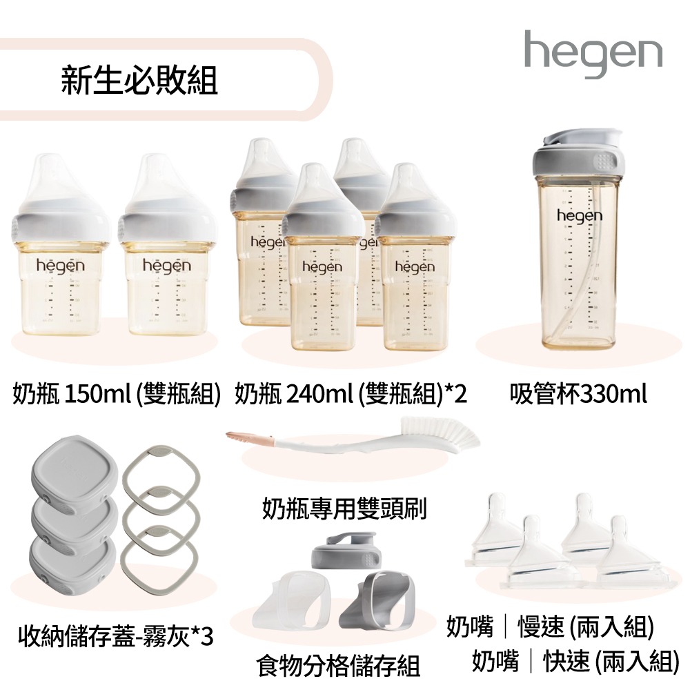【hegen】 六支人氣組 - (寬口奶瓶+奶嘴+水杯蓋+儲存蓋+專用刷)/母嬰用品/新生禮/月子中心/月嫂/蒸汽消毒 /紫外線消毒 /沸水消毒/FDA食品接觸認證/不含塑化劑/不含雙酚A/不含甲醛