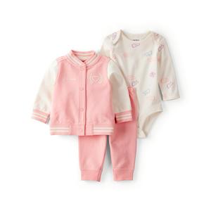 【Carter’s】粉紅學院風 3件組套裝(包屁衣/外套/長褲) | 官方授權 100%純棉 寶寶禮物 安全認證