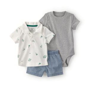 【Carter’s】暖暖小太陽 3件組套裝(Polo衫/短褲/帽子) | 官方授權 Polo衫 三件組 週歲生日禮首選