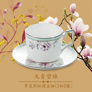 一杯子一輩子【A&L】骨瓷對杯禮盒組_天青碧綠(2杯2碟_精美禮盒包裝)
