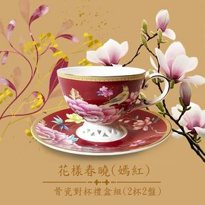 一杯子一輩子【A&L】骨瓷對杯禮盒組-花樣春曉-嫣紅 (禮盒緞帶包裝)