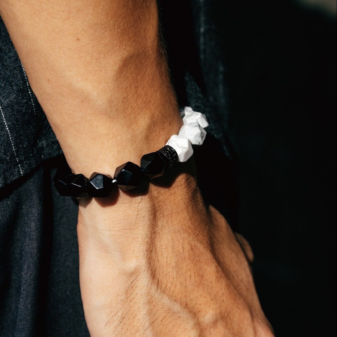 事事都順利【Montagne】HALF|黑曜石X白水晶切角手鍊 (男女款) 招財 護身符 幸運符 自信心 信念加強 同事 好友 男友 女友 職場禮 生日禮物 有你真好