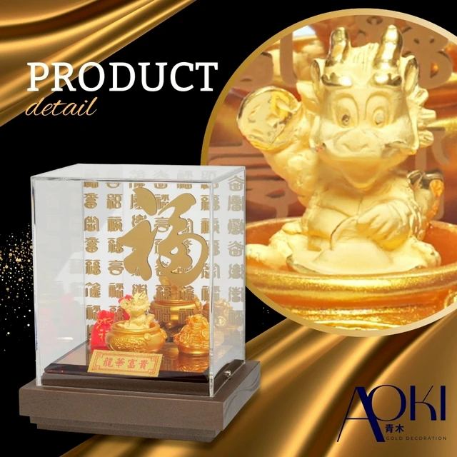 【AOKI青木】純金9999龍年黃金擺件 祥龍獻瑞 春聯龍 金重0.13錢(龍年招財 生日 開業 入宅送禮)